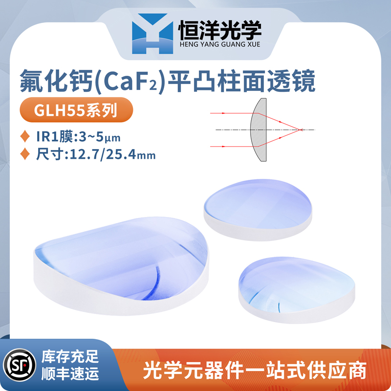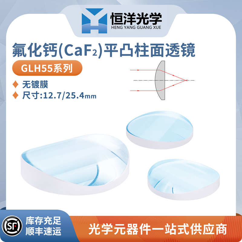 恒洋光学 GLH55系列 氟化钙平凸柱面透镜由一个平面一个凸柱面组成, 其焦距为正,常用于将平行或发散光束聚集到线上或改变像的宽高比。