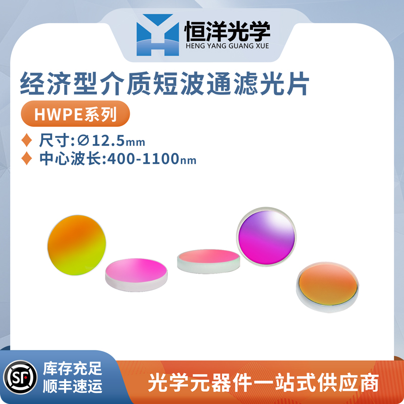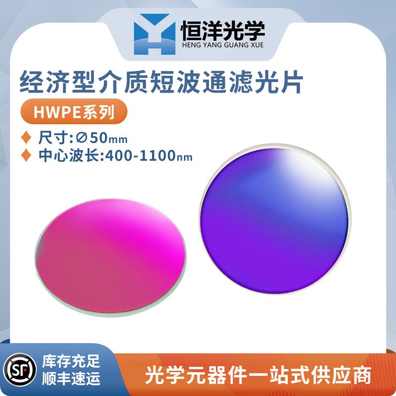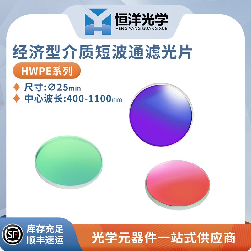 恒洋光学 HWPE系列 经济型短波通滤光片允许波长小于设定波长的光通过,波长大于设定波长的光截止。