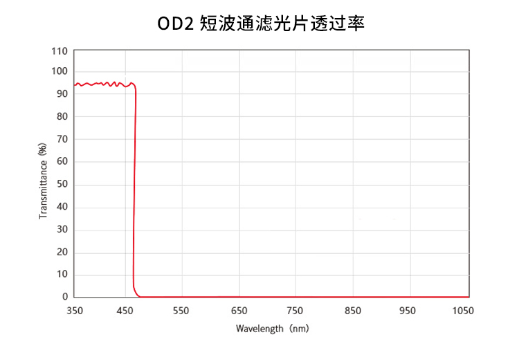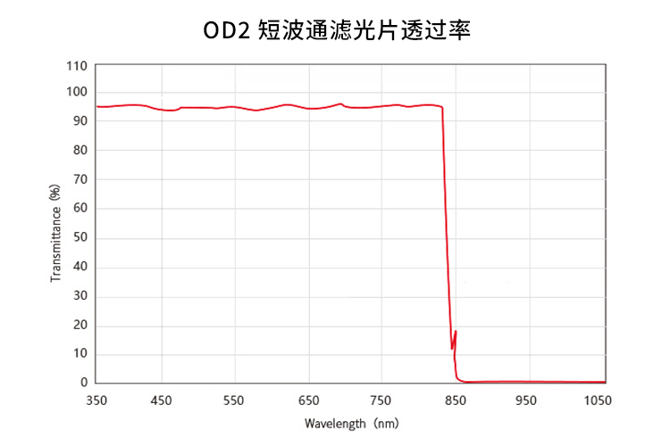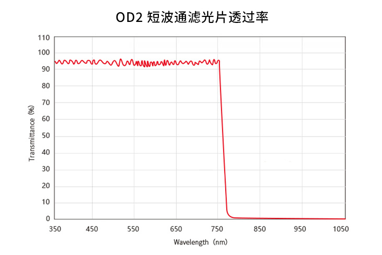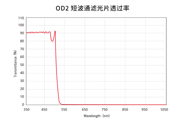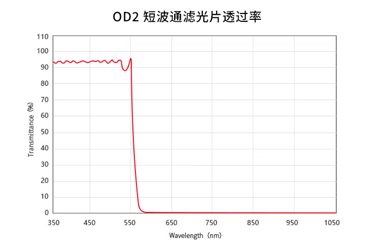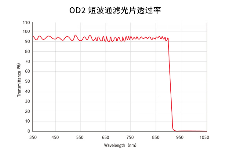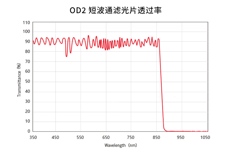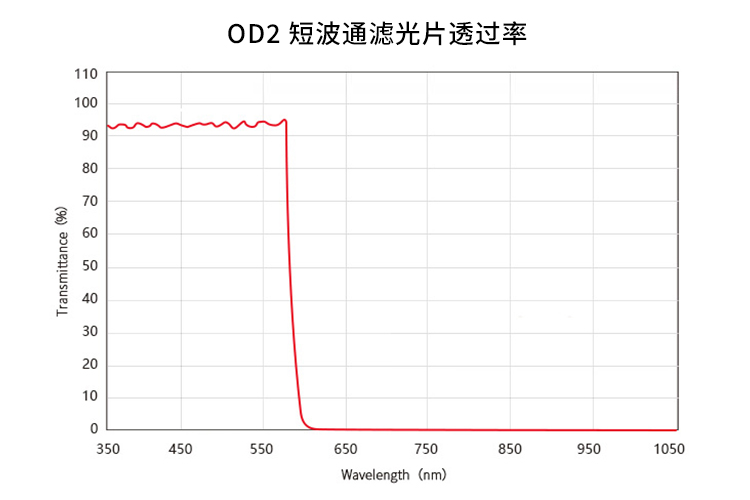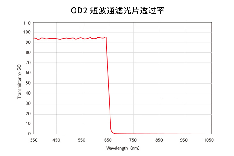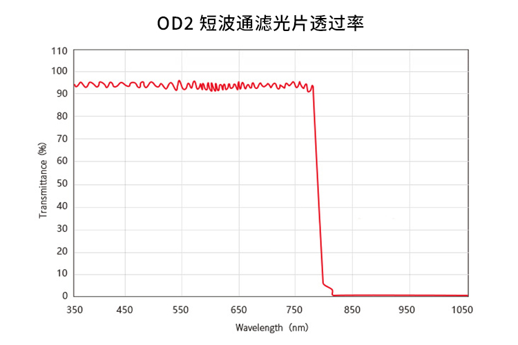 我们提供的短波通滤光片,具有截止带宽宽,截止深度深,转换陡度高,透过率高等优点。可广泛应用于荧光光谱、拉曼光谱、光谱分组及天文观测等领域。还可广泛用于成像光学系统,机器视觉系统应用,用来剔除可用波段以外的干扰光,极大地提高成像清晰度,以及系统的灵敏度。