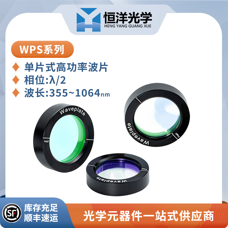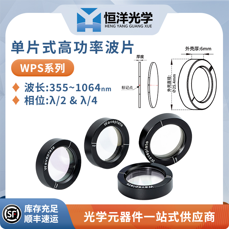 恒洋光学 WPS系列 单片式高功率波片是一种用于调节光波的器件,其原理基于偏振旋转效应和全反射。