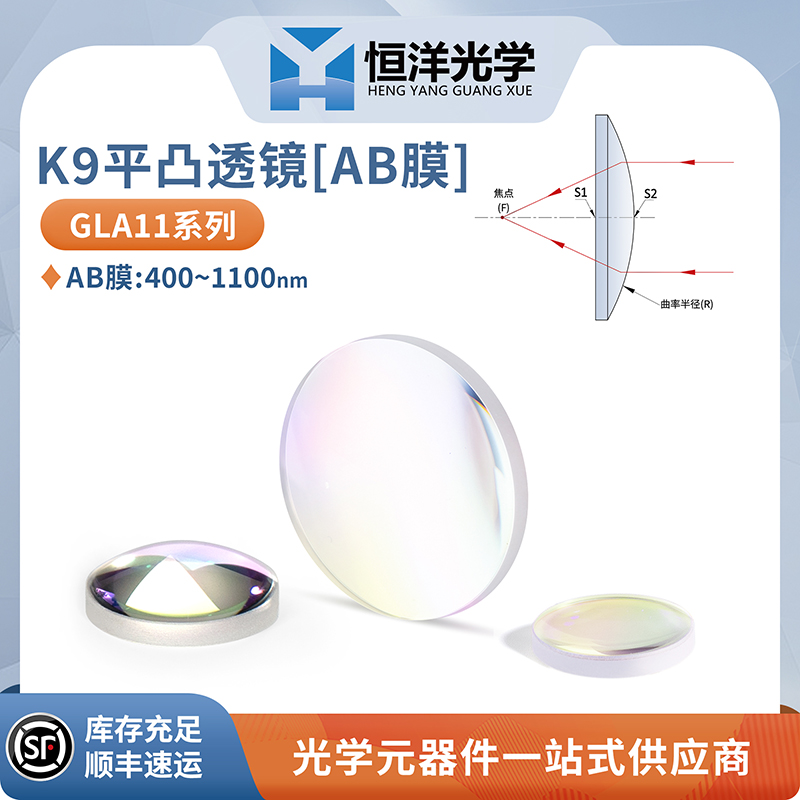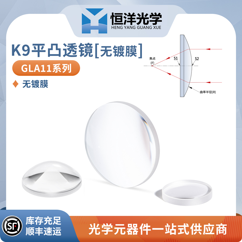 恒洋光学 GLA11系列 平凸透镜可聚焦准直光束,也可准直点光源发出的光。为了尽量减少引入的球差,在聚焦准直光束时应使其入射到透镜曲面上,而在准直点光源发出的光时应使其入射到透镜平面上。