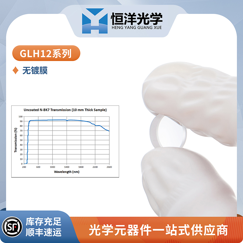 K9光学玻璃是一种优异的宽光谱透过光学材料,在350nm-2000nm波段具有高透过率,具有较高的硬度,能够承受多种物理和化学刺激,气泡和杂质含量较低,所以常作为各种光学元件的基底材料。当不需要紫外熔融石英的其他优势 (即在紫外区域有良好的透射率和较低的热膨胀系数)时,通常都选用这种光学玻璃。