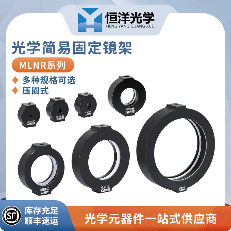 恒洋光学 MLNR系列 简易镜架拥有19种镜片安装尺寸与多种螺牙规格,可适用于各种不同厚度的镜片,不损伤镜片。每一种镜片安装架皆包含1个固定牙环与1个铁氟龙垫环镜架两端有M4与M6的螺纹孔可与绝大部分的光学机构件进行结合。
