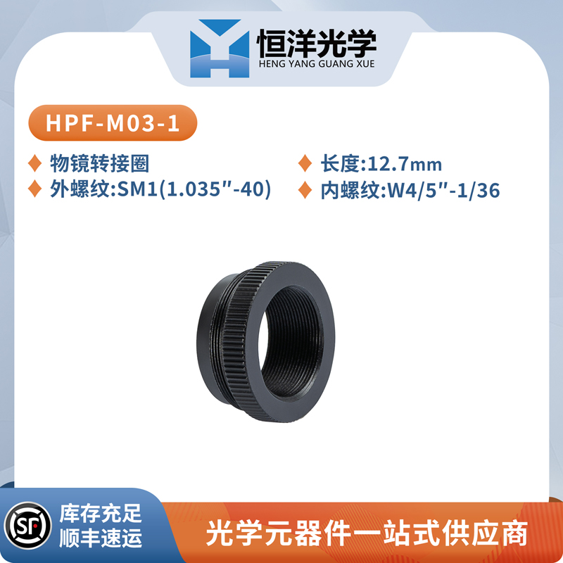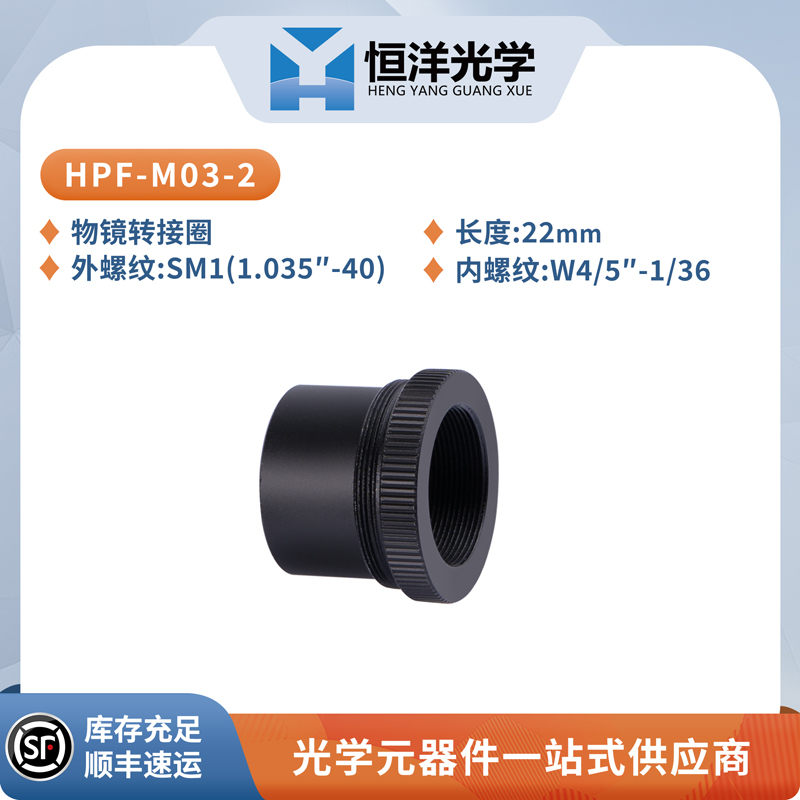 • HPF-M03-1 物镜转接圈搭配 HK系列 L45显微物镜;• HPF-M03-2 物镜转接圈搭配 HK系列 L35的显微物镜 (物镜需另购) 。
