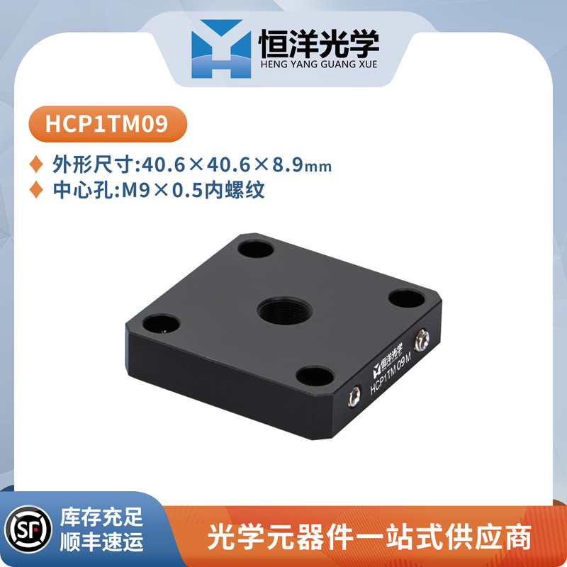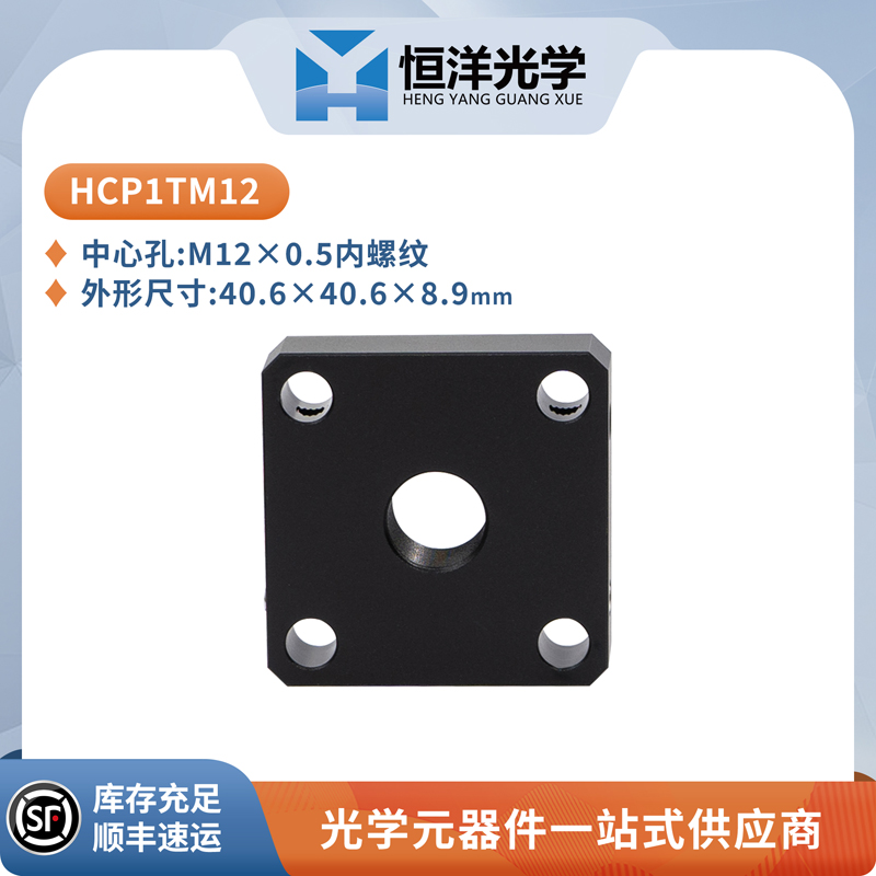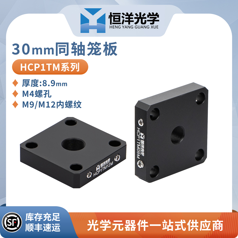恒洋光学 HCP1TM系列 笼板非常适合将非球面透镜或小型消色差透镜安装在 30 mm笼式系统中,不需要转接件。它们可选M9或M12内螺纹。带有M12内螺纹的笼板非常适合安装我们带有M12 × 0.5外螺纹的单透镜和三合透镜准直器。每个笼杆通孔适用于∅6mm的 HCT系列 笼杆,侧面带有锁定螺丝,通过5/64英寸(2mm)六角扳手可固定笼杆。