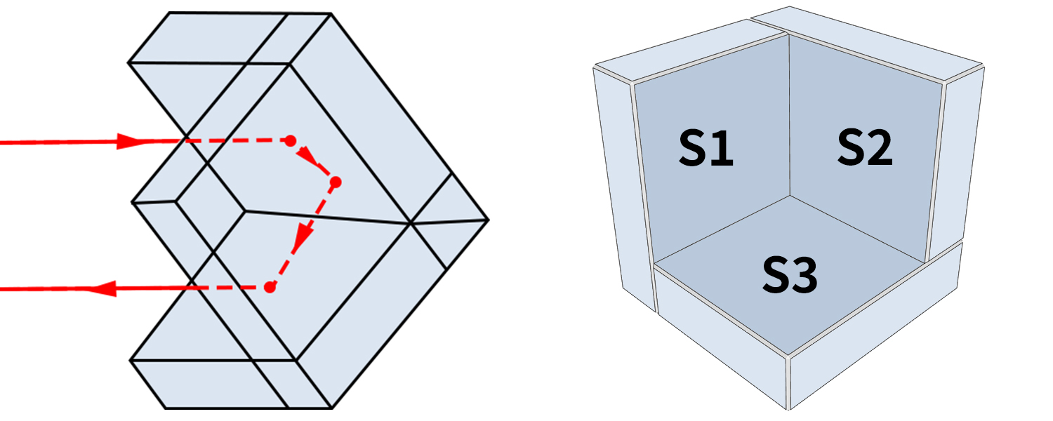 恒洋光学 GMH20系列 中空角锥反射器和角锥棱镜一样,采用三面高精度互垂反射镜面构成的立体角结构,可实现入射光线无角度依赖的180°精准回射。该器件凭借独特的开放式光路设计,有效规避传统玻璃棱镜的色散、色差及材料吸收问题,同时消除前表面反射干扰,是精密光学系统的理想选择我们提供已安装在转接件中的中空角反射棱镜,转接件具有SM05(0.535"-40)外螺纹, 可配合 LMR-05 简易镜架螺纹安装座安装使用。
