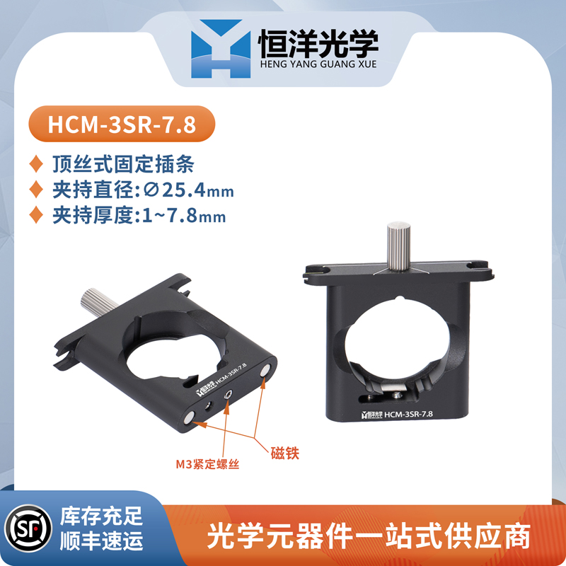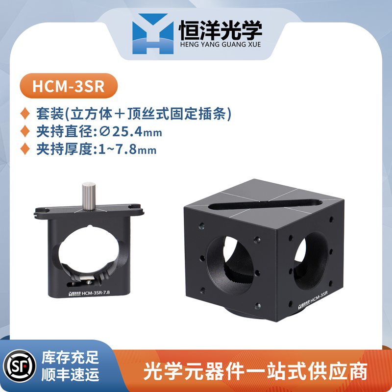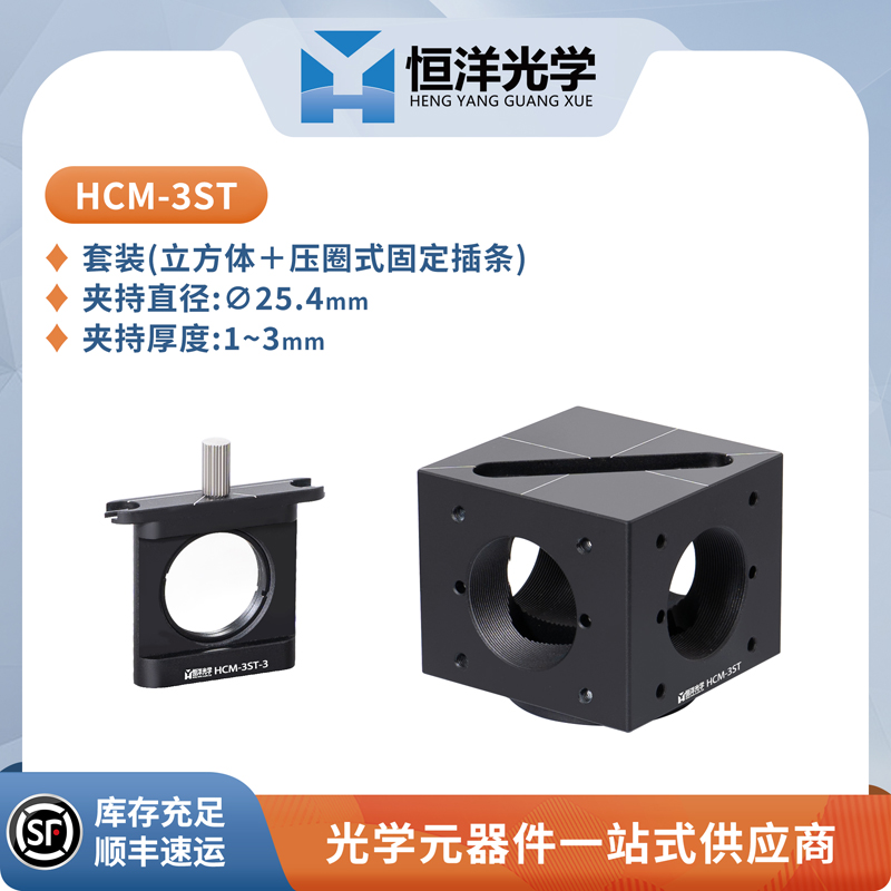 恒洋光学 HCM-3SR-7.8 / HCM-3ST-3 可用于固定∅25.4mm圆形镜片。可与 HCM-3S系列 同轴立方体搭配使用,用于安装30mm同轴系统,同时也能保护光学元件。