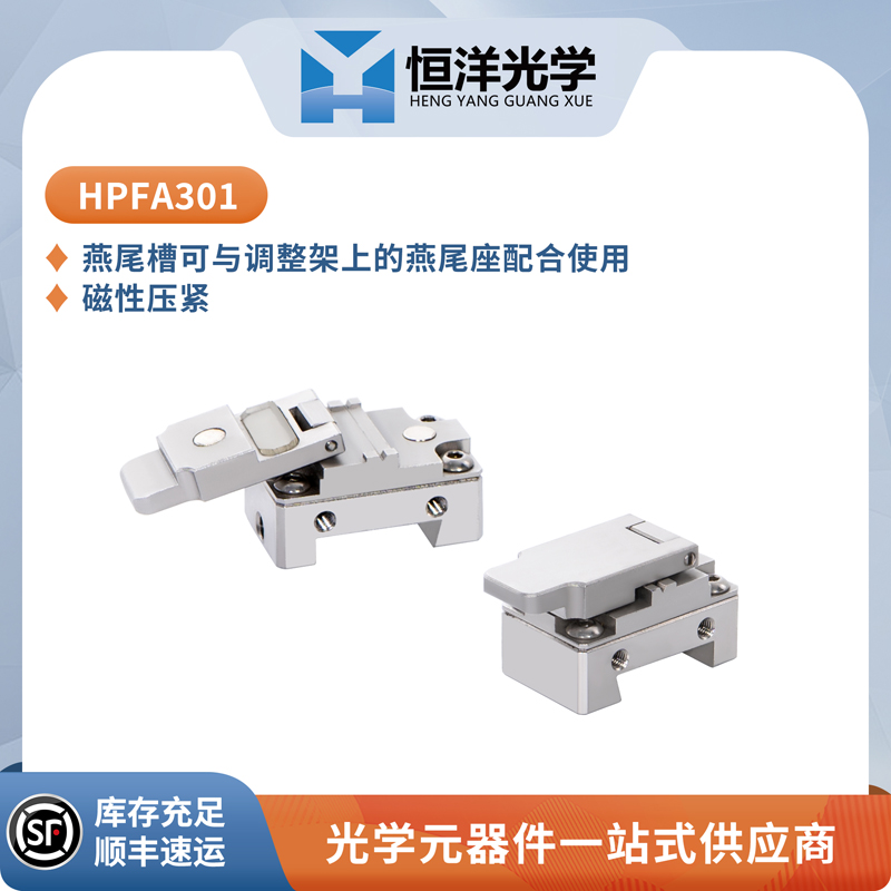 恒洋光学 HPF-XYZT系列 高精密六维光纤调整架用于光纤的精密夹持与调整。单维的俯仰精度与偏摆精度均小于10″,移动精度0.001mm,调整量±6.5mm。高精度与高稳定性使其非常适合光纤对接,光纤耦合等应用。不锈钢材料,便于嵌入各种系统中。丰富的产品配件,可以搭配不同的应用要求。