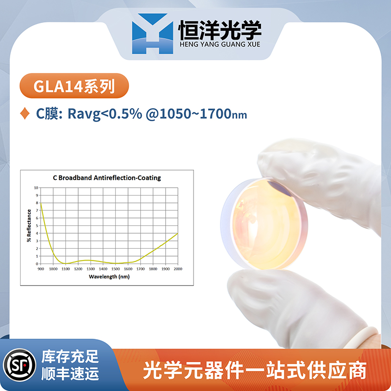 GLA14系列 镀膜可选:▶ 未镀膜;▶ A膜 (350-700 nm);▶ B膜 (650-1100 nm;▶ C膜 (1050-1700 nm)。