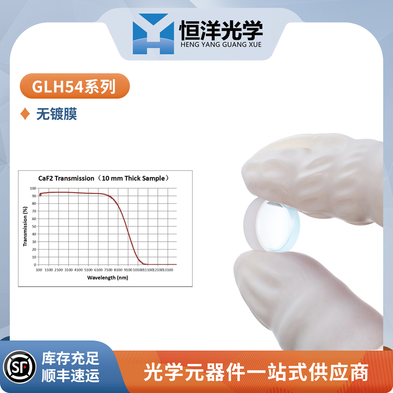 恒洋光学 GLH54系列 氟化钙(CaF₂)双凹透镜可选未镀膜和镀IR1增透膜(Ravg<1.5% @3~5μm)的版本。