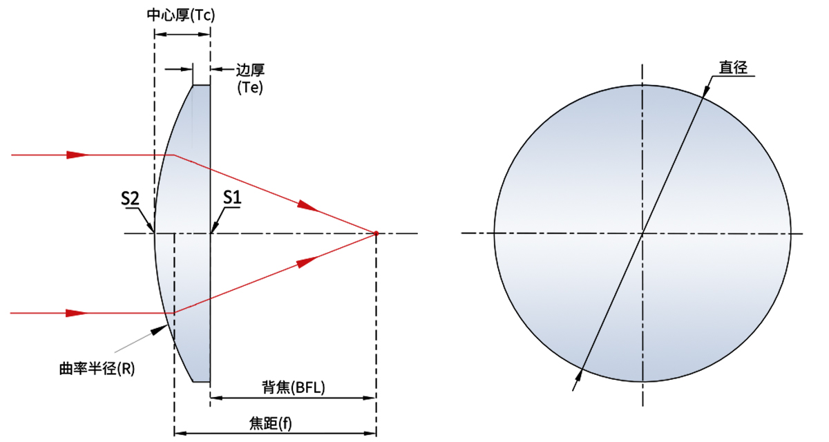 平凸柱面透镜是一维放大应用的理想选择。球面透镜对入射光在两个方向上的作用是对称的,而柱面透镜对入射光只有一个方向上的作用。典型的应用是用一对柱面透镜实现变形光束的整形。一对平凸柱面透镜可以用于准直和圆形化激光二极管的输出。另一个可能的应用是用单个柱透镜将发散的光束聚焦到探测器阵列上。为了较小化球差,当将准直光束会聚成一条线时,准直光应从透镜的曲面入射,而当准直线光源时,应将线光源入射到透镜的平面。