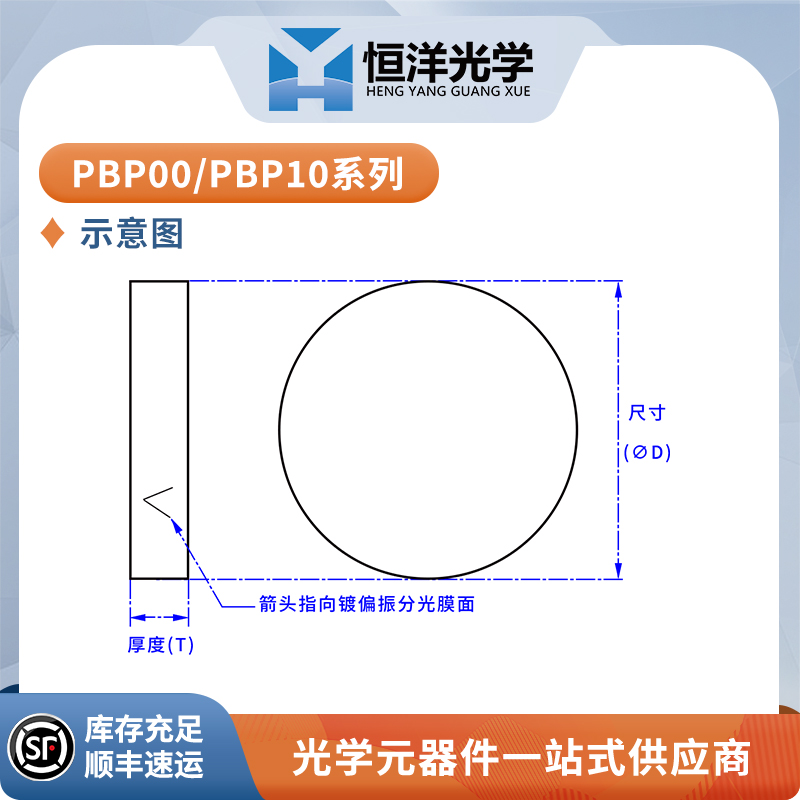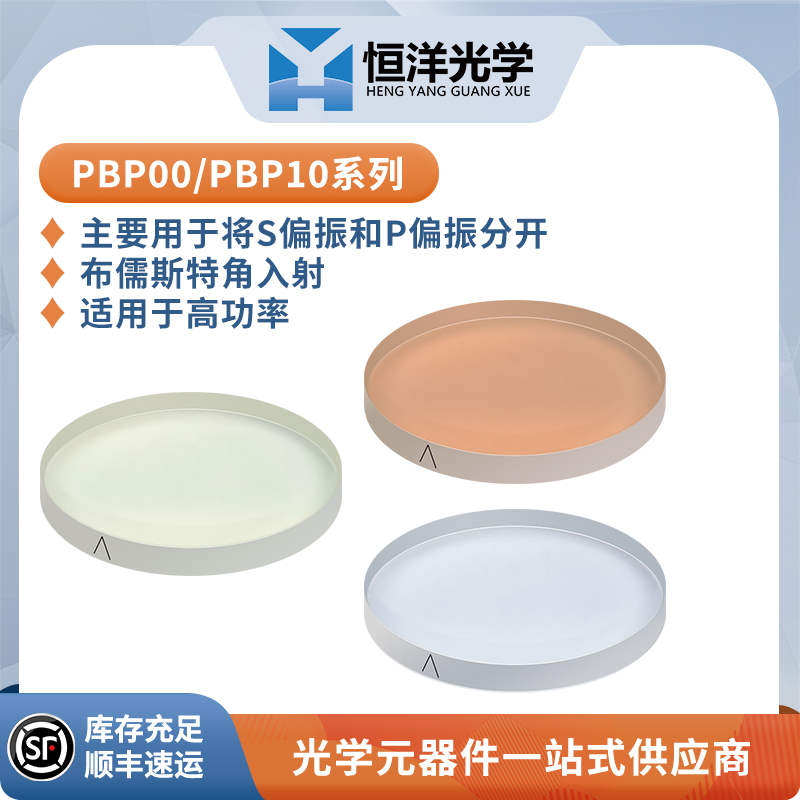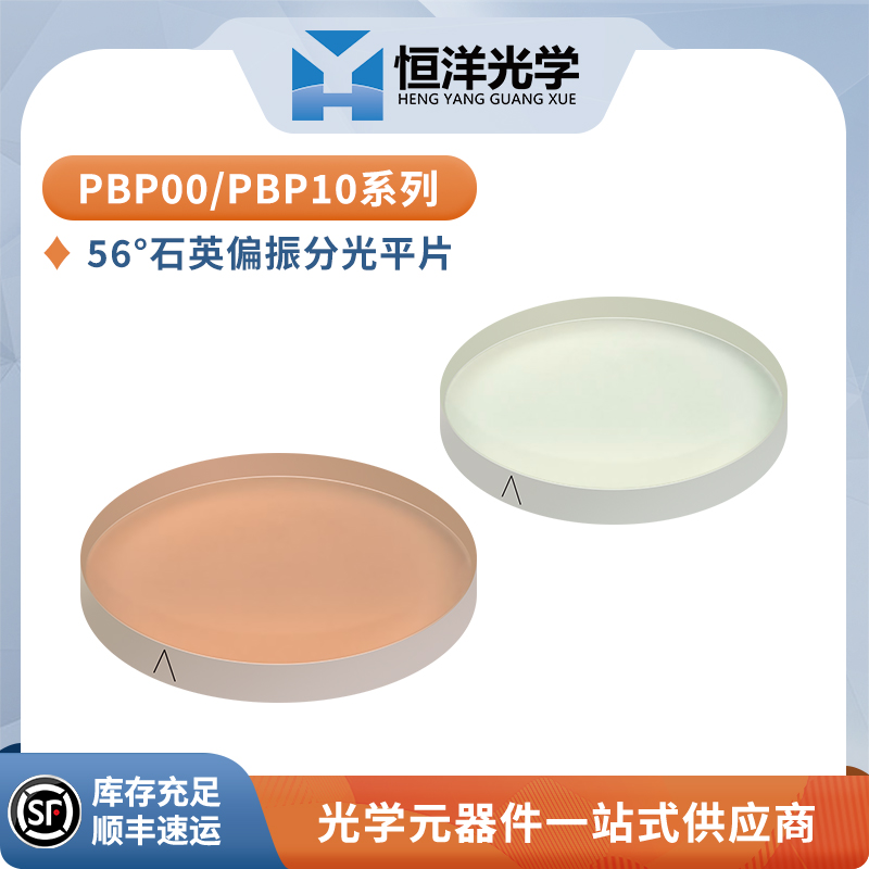 恒洋光学 PBP00系列 与 PBP10系列 56°偏振分光片是一种可用于分离入射光不同偏振分量(p光与s光)的偏振光学元件,分别对p光透射,s光反射。
