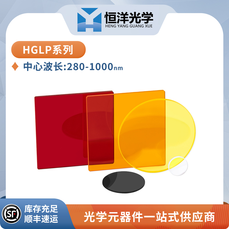 恒洋光学 HGLP系列 颜色玻璃长波通滤光片是指在玻璃熔炼过程中添加特种元素,从而对不同的光谱波段产生吸收,并对其他波段光谱透过。因采用材料的固有吸收特性或透射特性,对比于于介质镀膜滤光片,颜色玻璃滤光片对不同入射角入射的光束,其中心波长不会变动。