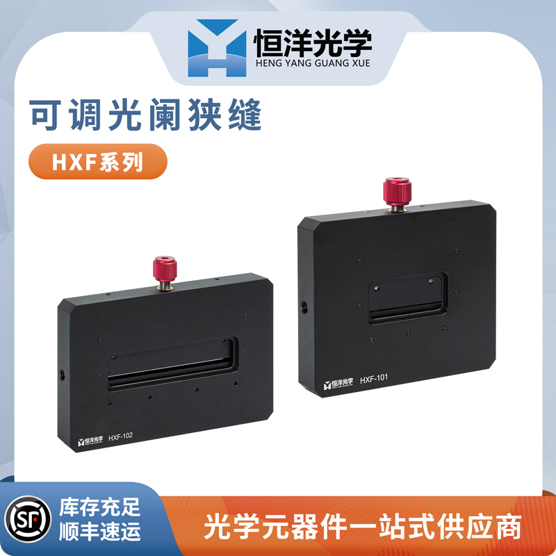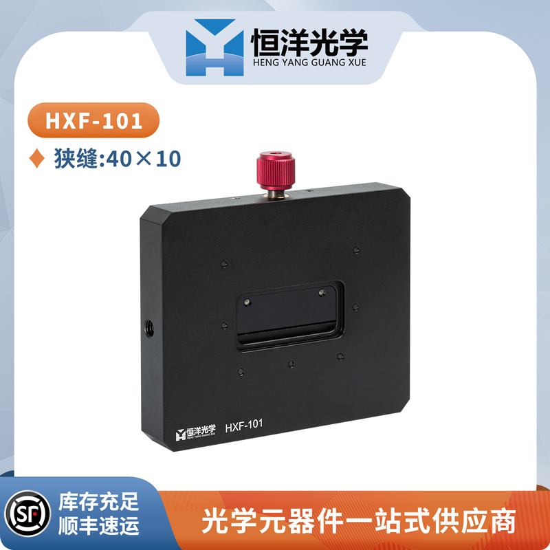 恒洋光学 HXF系列 狭缝可提供不同长度的狭缝,狭缝的宽度可调。在两个相互垂直的侧面分别有M6孔,可与支杆或其他产品配套使用,获得横向或竖向狭缝。