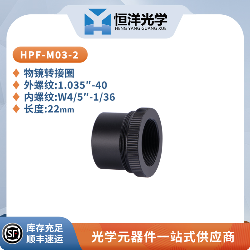 • HPF-M03-1 物镜转接圈搭配 HK系列 L45显微物镜;• HPF-M03-2 物镜转接圈搭配 HK系列 L35的显微物镜 (物镜需另购) 。