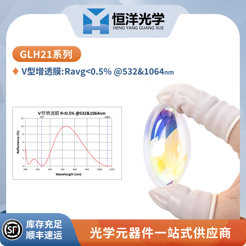 恒洋光学 GLH21-V系列 针对 355nm、532nm、1064nm 激光器发出的激光波长而设计的高功率激光平凸透镜,采用康宁7980熔融石英材料做为基底,表面镀有高透过率高抗激光阈值增透膜,抗激光阈值可达 20J/cm²,被广泛应用在教育科研、激光加工领域。