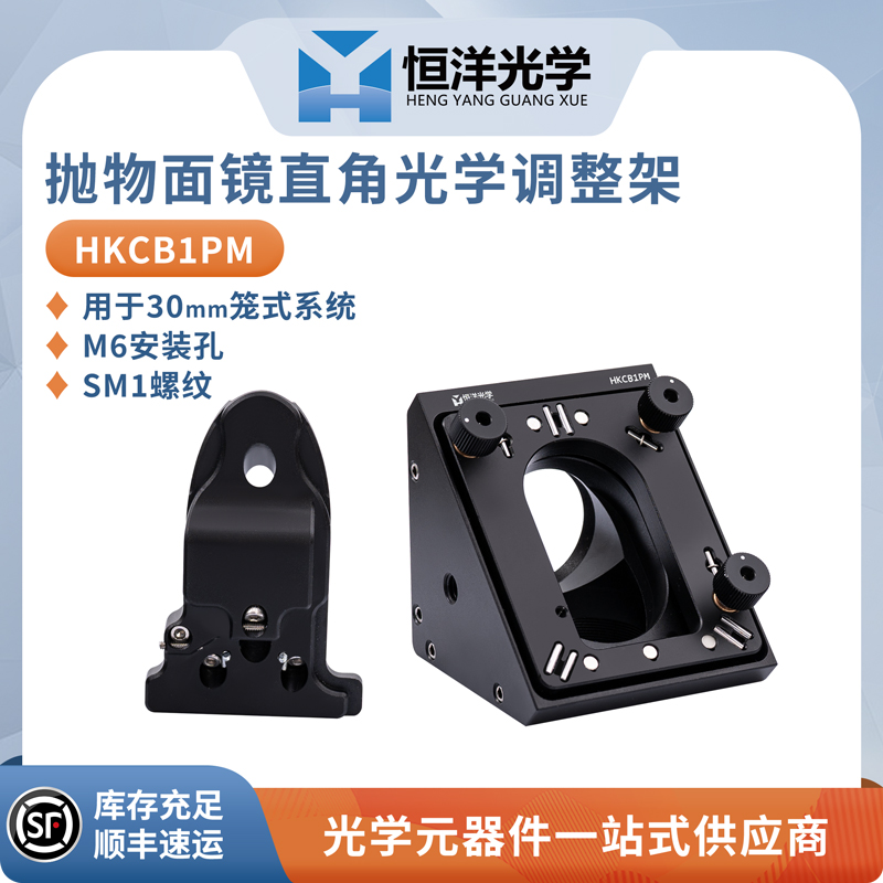 恒洋光学 GMH18系列 离轴抛物面反射镜可以在空间上将焦点从光路中分离出来,在特定角度下实现光源准直以及平行光聚焦,支持无限远焦点。全反射的设计可以去除透射光学元件引入的吸收损耗和相位延迟。带小孔的离轴抛物面镜在镜体上有指定角度的透光孔,可以实现空间中两束光波的共轴传播。