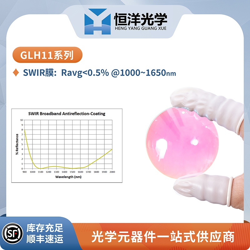 GLH11系列 平凸透镜可选未镀膜和镀三种宽带增透膜的版本:VIS膜(400-700nm)、NIR膜(650-1050nm)或SWIR膜(1000-1650nm)。