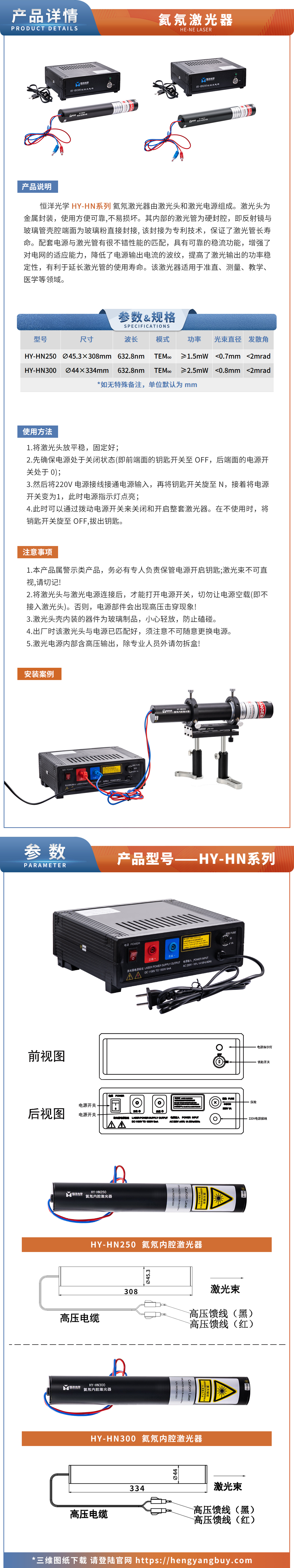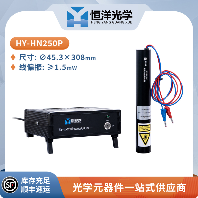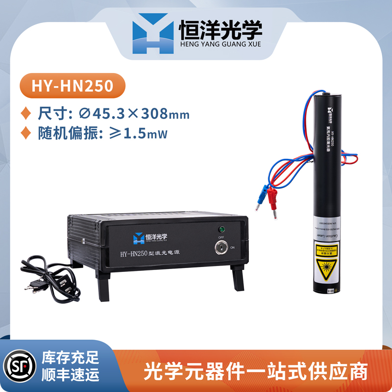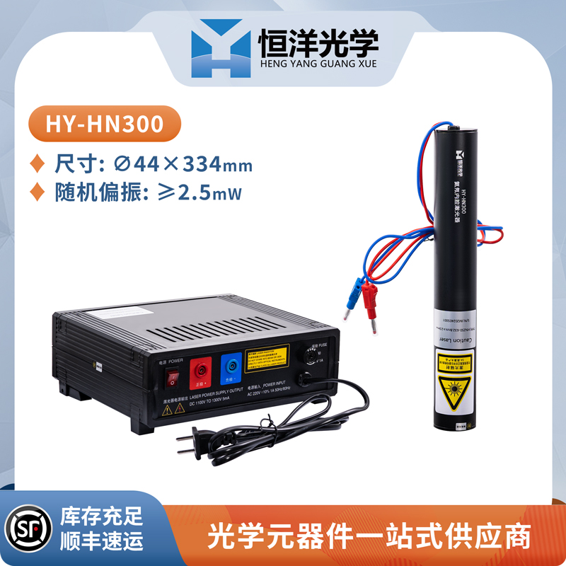 恒洋光学 HY-HN系列 氦氖激光器由激光头和激光电源组成。激光头为金属封装,使用方便可靠,不易损坏。其内部的激光管为硬封腔,即反射镜与玻璃管壳腔端面为玻璃粉直接封接, 该封接为专利技术,保证了激光管长寿命。配套电源与激光管有很不错性能的匹配,具有可靠的稳流功能,增强了对电网的适应能力,降低了电源输出电流的波纹,提高了激光输出的功率稳定性,有利于延长激光管的使用寿命。该激光器适用于准直、测量、教学、医学等领域。