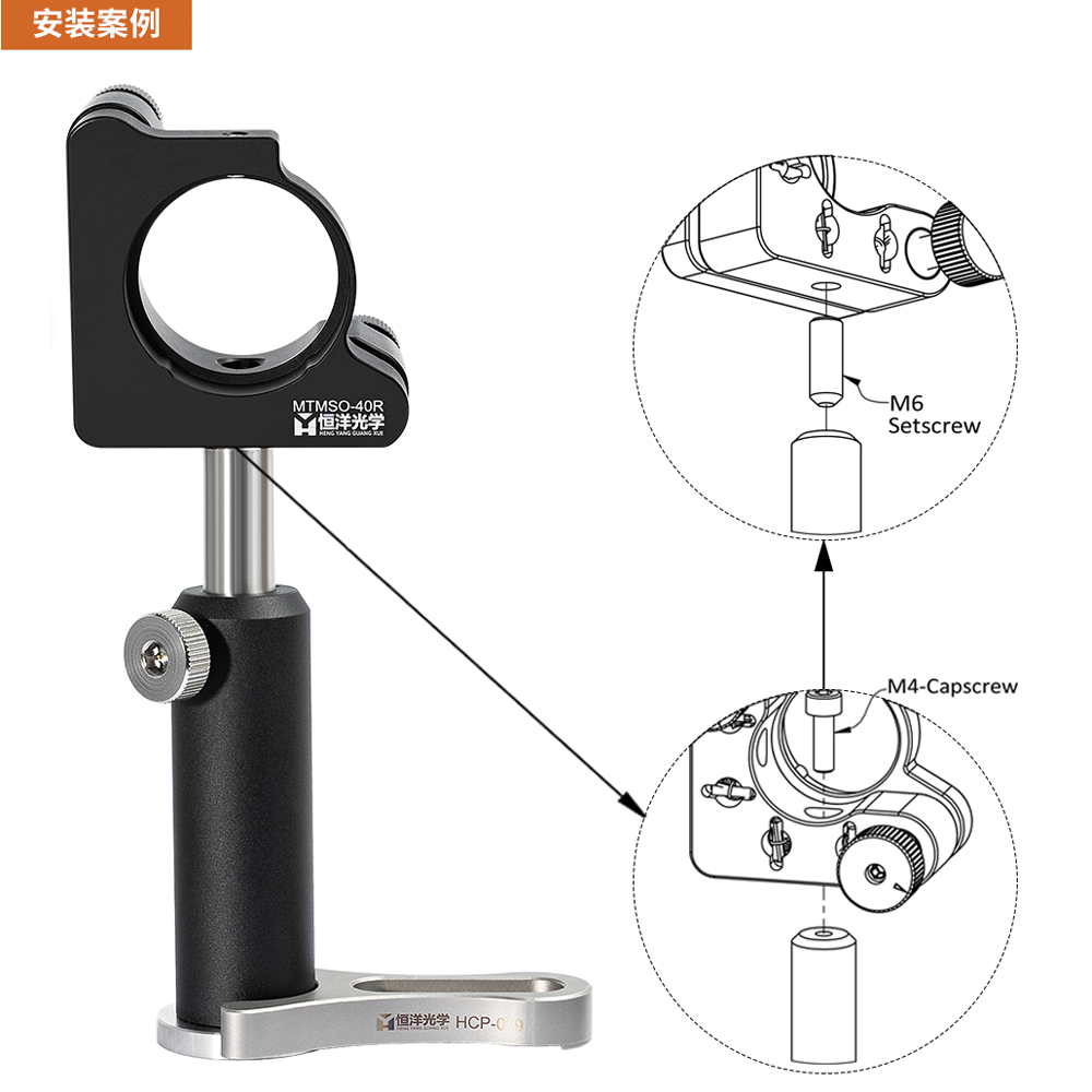 恒洋光学 MTMSO系列 二轴O型镜架采用弹式结构。进口螺纹副,手感顺畅,更适合于微小量的精密调节。透过镜架上的M6螺纹与M4沉头孔复合结构,可与大部分的机械结构进行结合同时满足客户的需求,也提供了锁定功能。