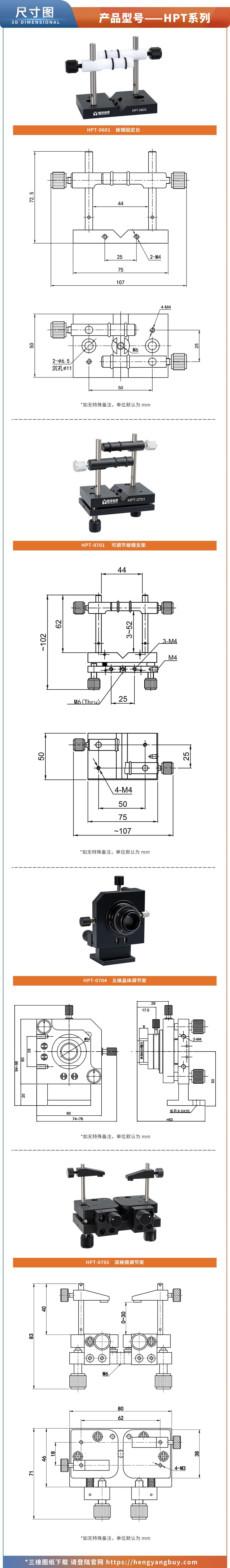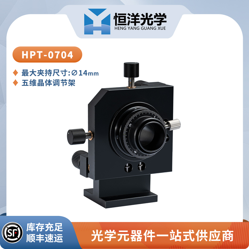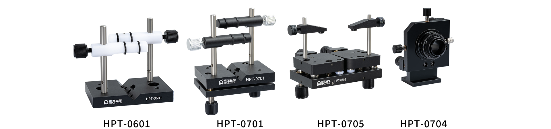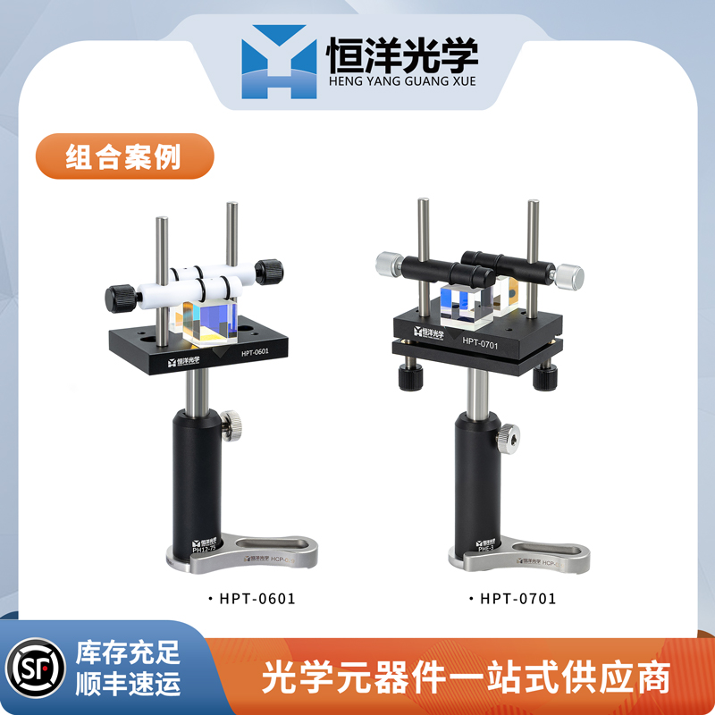 HPT-0705 双棱镜调节架适用于立方棱镜、直角棱镜等光学元器件,此棱镜架有两个承物台,两个压臂,因此可以同时夹持两个光学元器件。