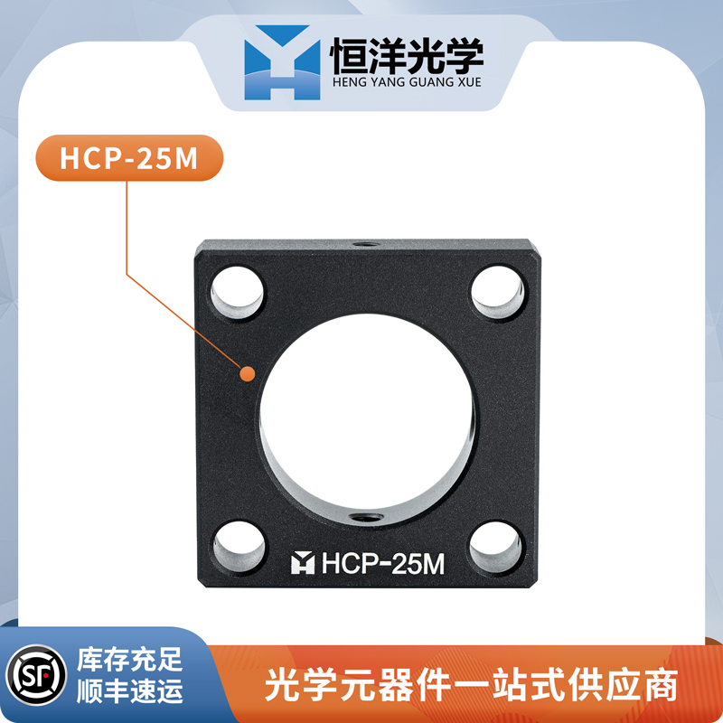 恒洋光学 HCP-25M 笼板用于30mm同轴系统,主要用以夹持25mm的圆型器件,在同轴系统中实验各元器件嵌入使用。四个φ6mm通孔可与 HCT系列 同轴支杆配合使用。